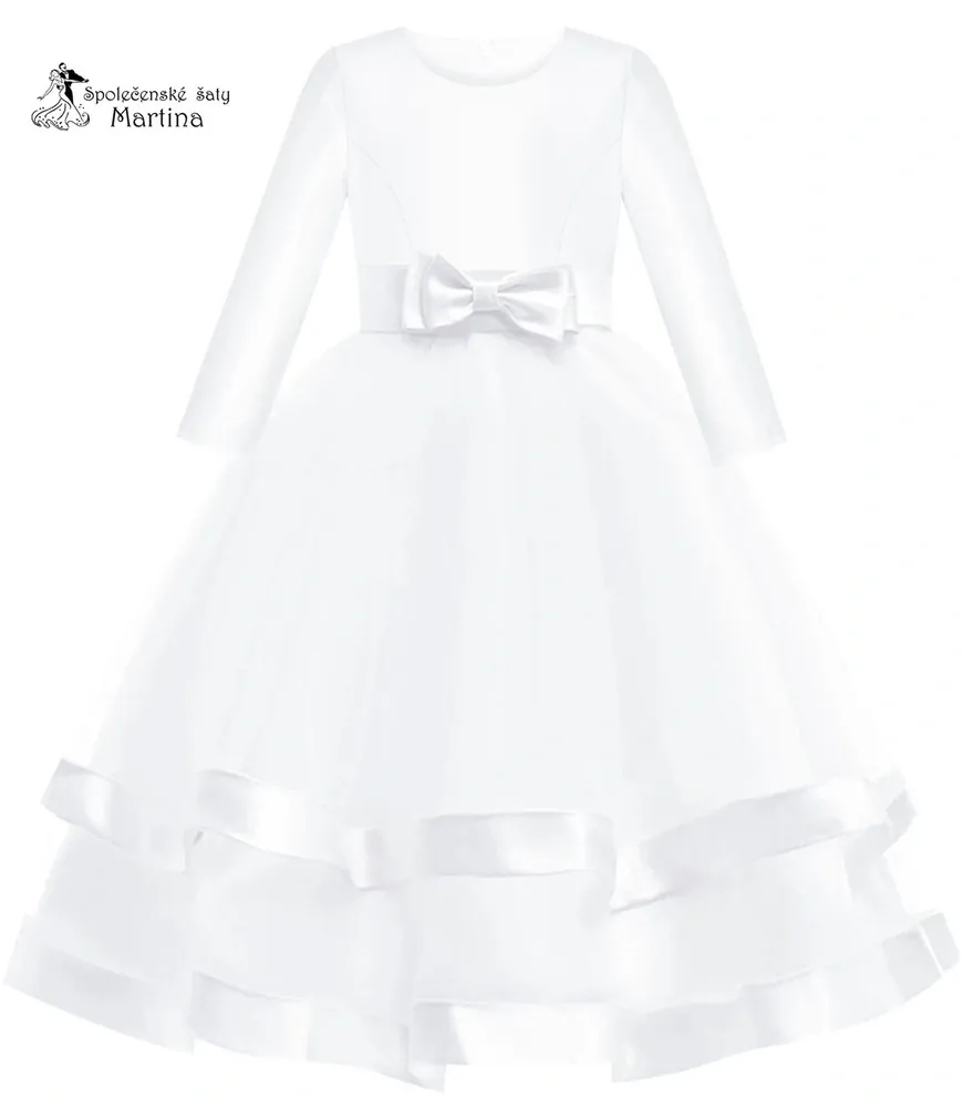 - Bílé dívčí šaty "Doubravka" - vel. 8, dlouhý rukáv, dlouhá sukně