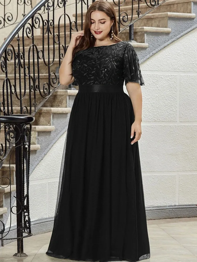 Černé společenské šaty "Celeste XXL" s krátkým rukávkem