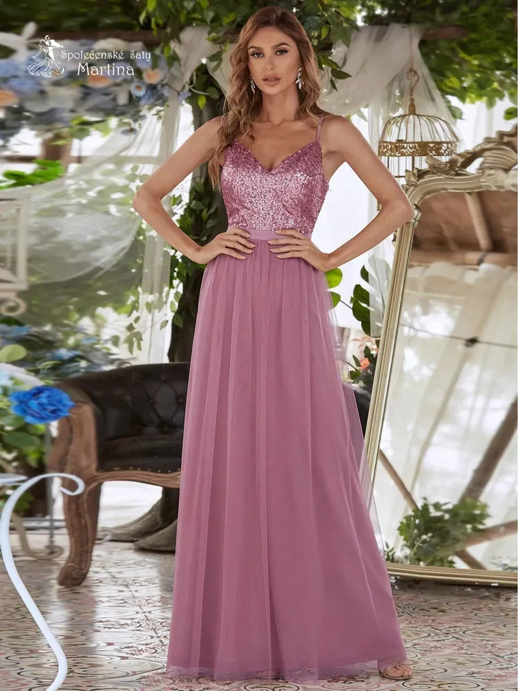 - Dlouhé růžové společenské šaty "Milly" se špagetovými ramínky