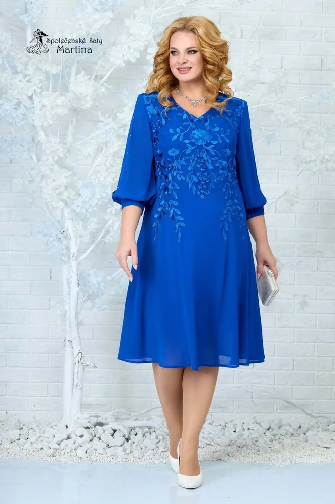 - Královsky modré lehké šifonové midi šaty "Peggy"
