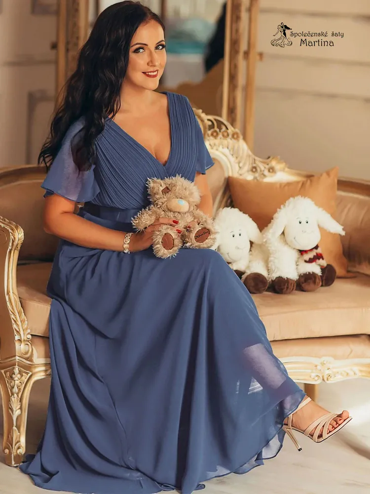 - Šifonové šaty "Camila XXL" antického střihu v barvě "dusty navy"
