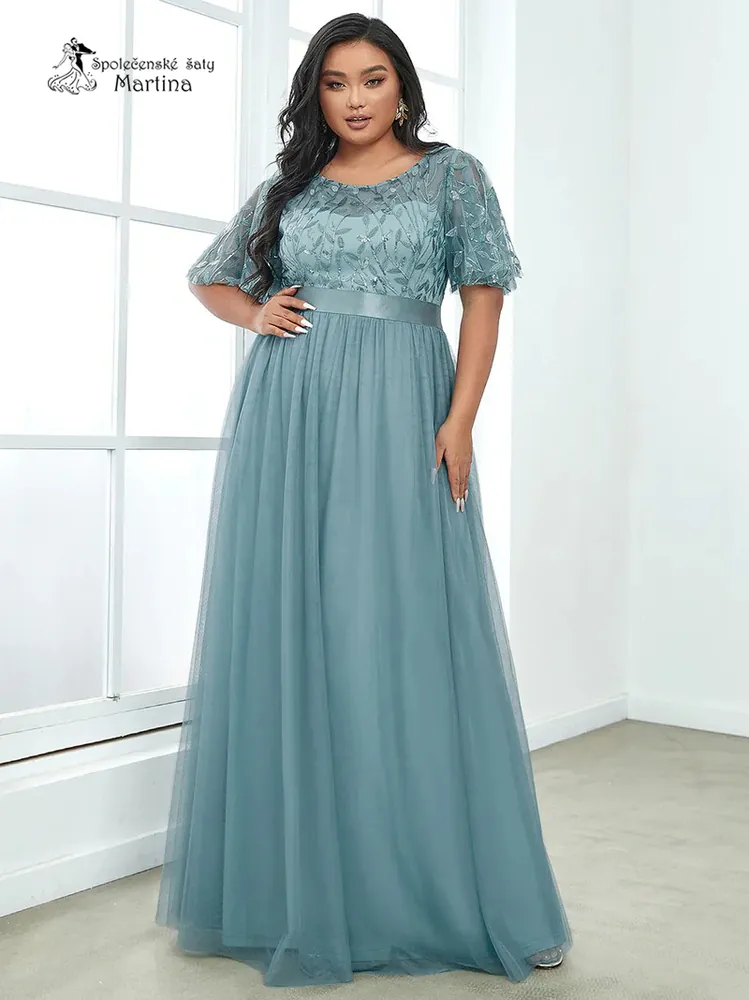 - Staromodré společenské šaty "Celeste XXL" s krátkým rukávkem