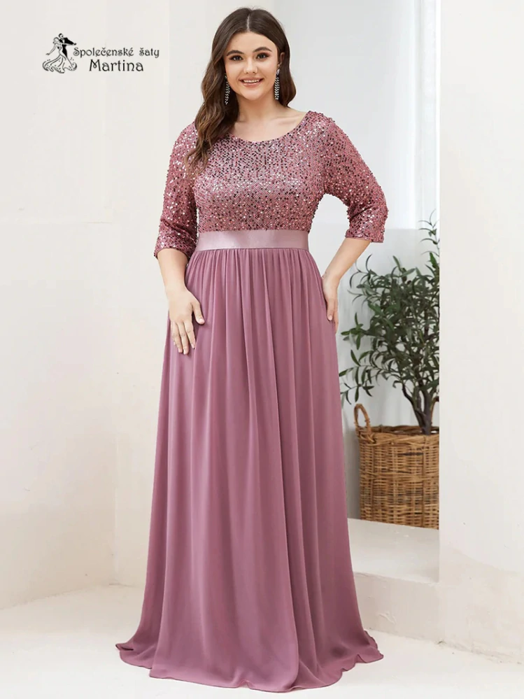 Starorůžové společenské šaty "Piper XXL" s 3/4 rukávy a s flitrovým živůtkem