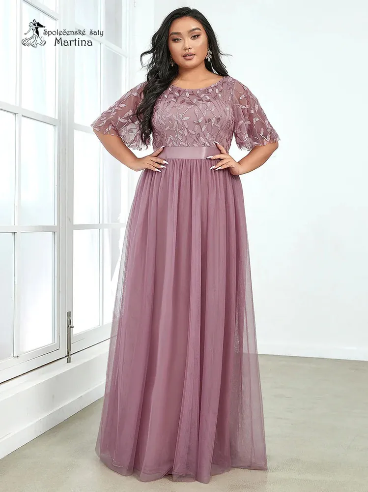 Starorůžové společenské šaty "Celeste XXL" s krátkým rukávkem