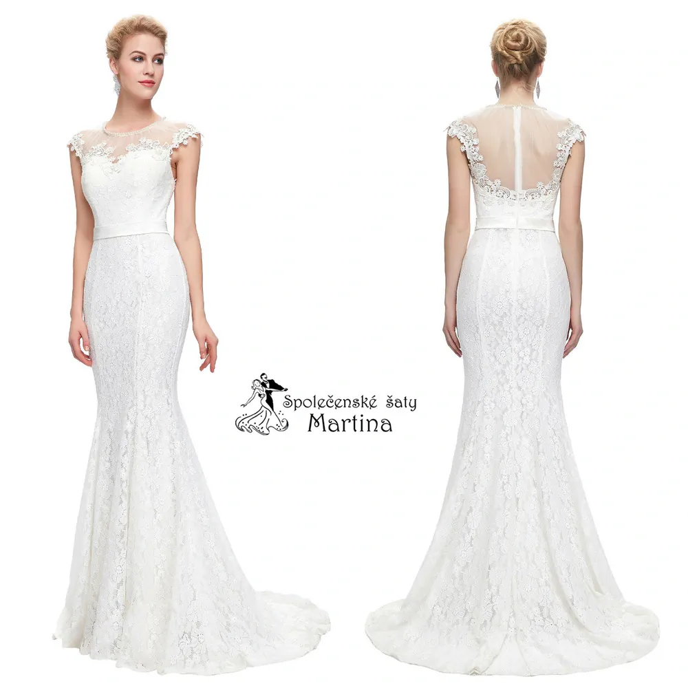 Elegantní krajkové večerní šaty trumpetového střihu.