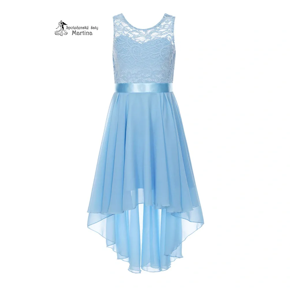 - Světle modré asymetrické dívčí šaty "Ivetka" 6-16 let