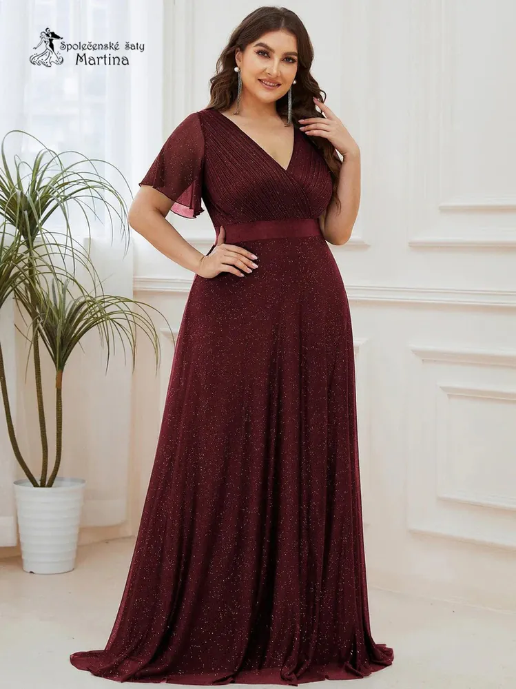 Vínové jemně třpytivé společenské šaty s volnými rukávy "Darien" - vel. 48