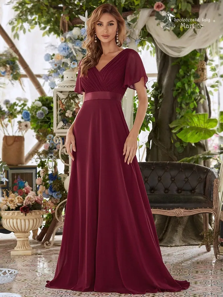 » krásné šifonové společenské šaty antického střihu s lehkými rukávy a hustě skládaným výstřihem » ideální pro družičky, svatební hosty, na zahradní párty, ale také na plesy, či jiné formální příležitosti » volná sukně áčkového střihu » šaty mají mírně prodlouženou vlečku.   Materiál: 100% polyester... číst dále