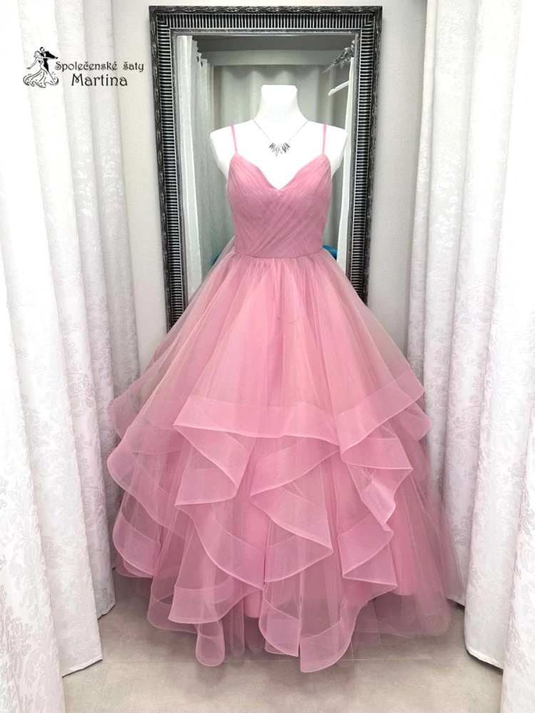 - Starorůžové maturitní šaty "Brooklyn" s volány v sukni