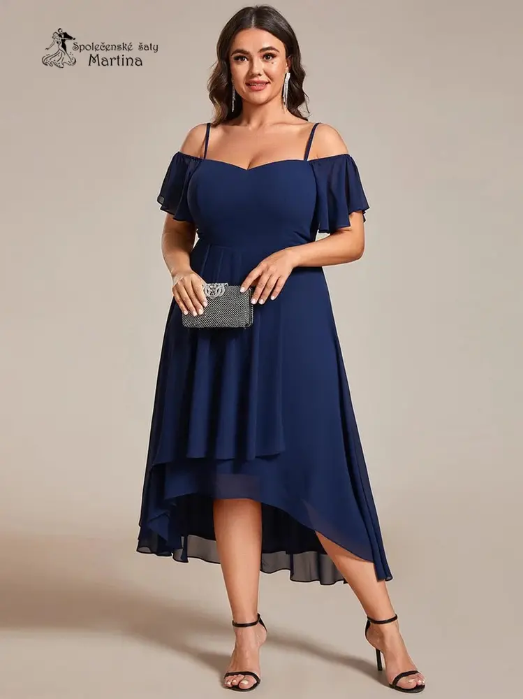- Tmavě modré XXL asymetrické šaty "Belinda" se spadenými rukávy