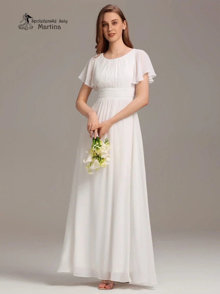 - Bílé šifonové šaty s rukávkem a žabičkováním na zádech "Stela"