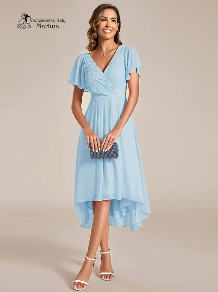- Blankytně modré midi asymetrické šifonové šaty s volným rukávem "Debra" - vel. 40