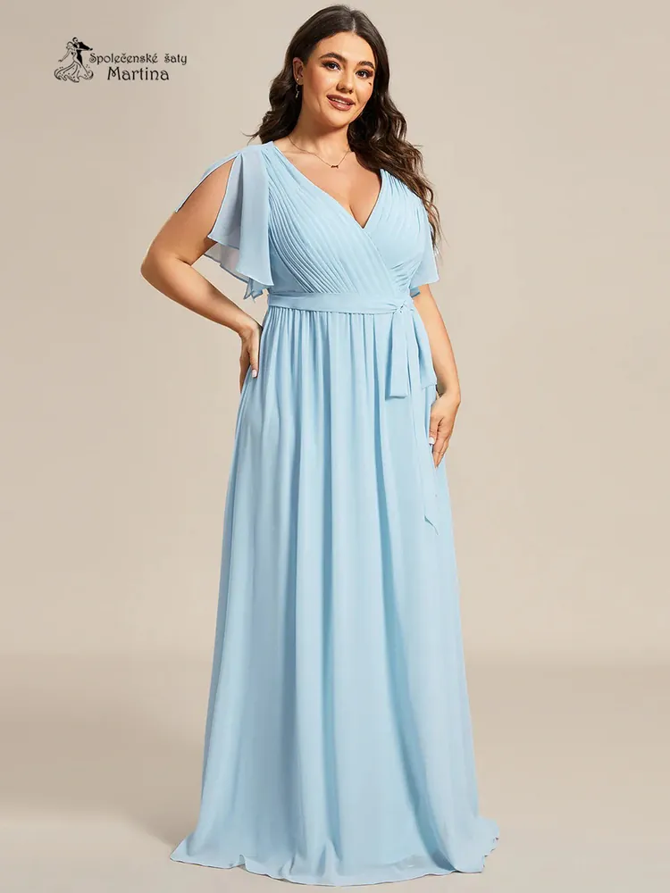 - Blankytně modré společenské plus size šaty či pro svatebního hosta "Katherine" s volnými rukávy