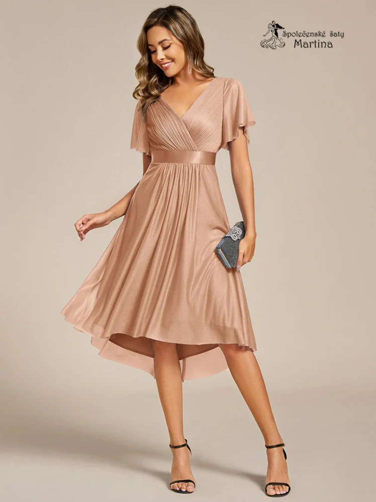 - Zlato růžové lehké, mírně asymetrické šaty "Bonita" s krátkými rukávy