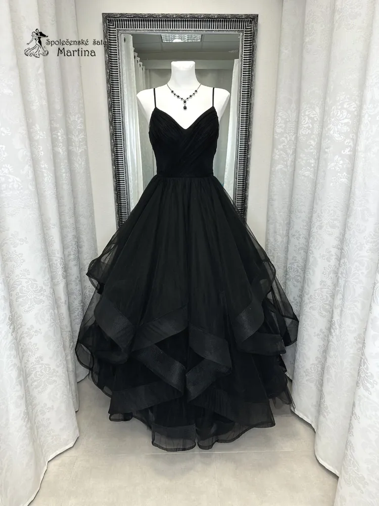 - Černé maturitní šaty "Brooklyn" s volány v sukni