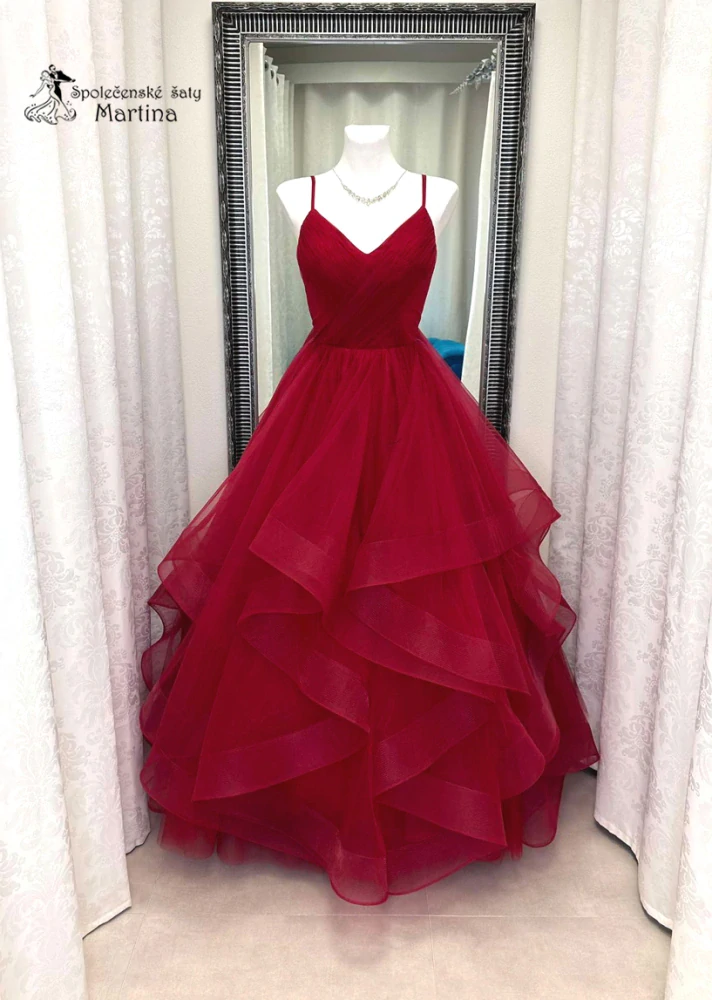 - Vínové maturitní šaty "Brooklyn" s volány v sukni