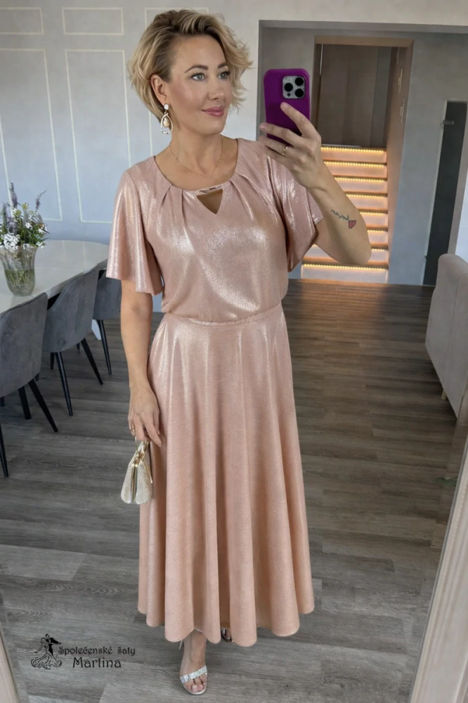 Broskvové společenské šaty "Primavera" s třpytivým efektem a širokou sukní