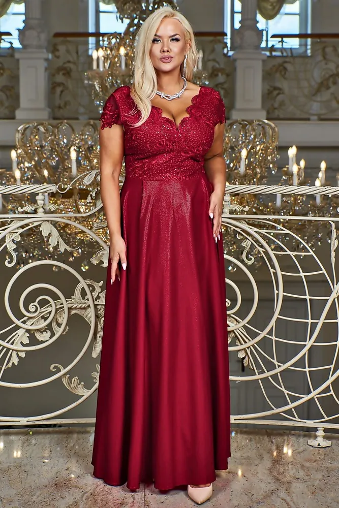 - Vínové dlouhé brokátové šaty "Carmen" s krátkým rukávem