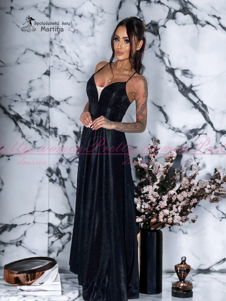 - Černé brokátové maturitní šaty "Ania" na šněrování - vel. 40