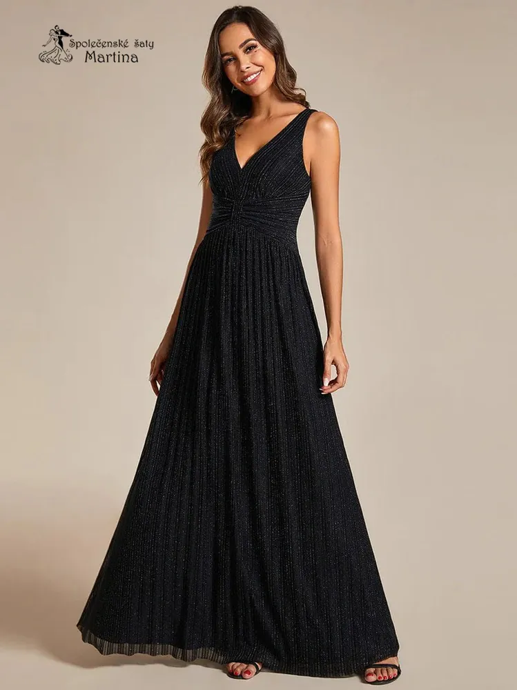 3. Černé dlouhé společenské šaty "Astrid" z jemné žebrované látky