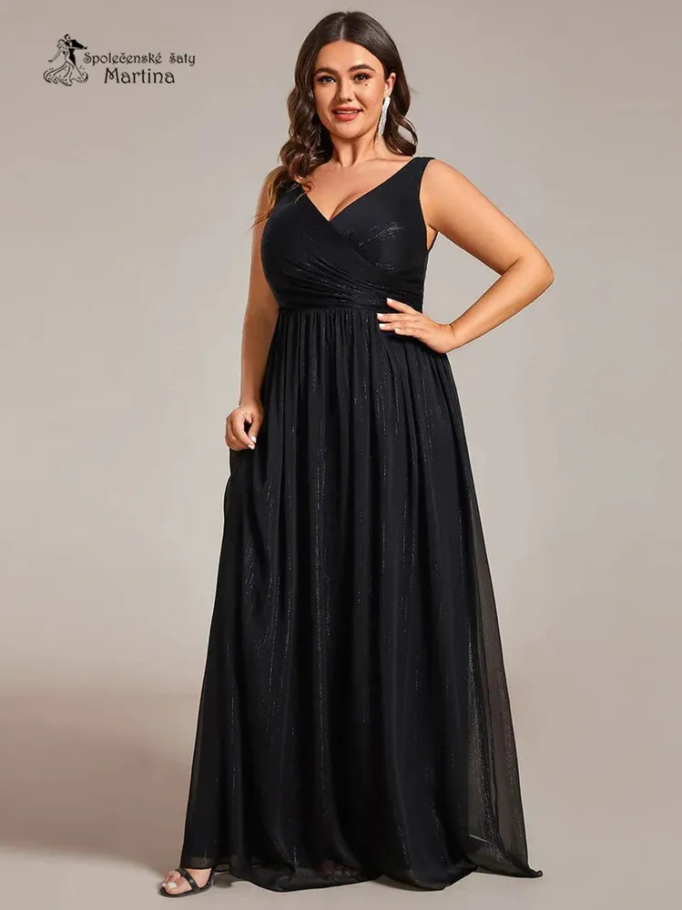 - Černé dlouhé společenské šaty "Kristeen" z krásné látky protkané stříbrnou nití - vel. 52