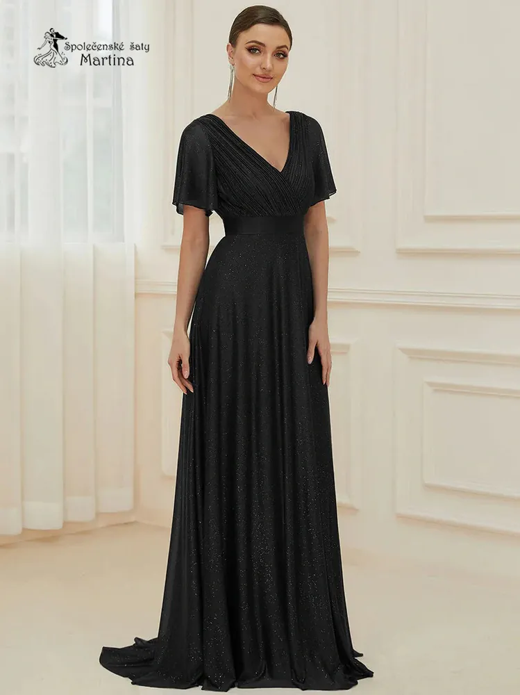 Černé jemně třpytivé společenské šaty s volnými rukávy "Darien" - vel. 342 390 Kč/ ks1 975 Kč bez DPH