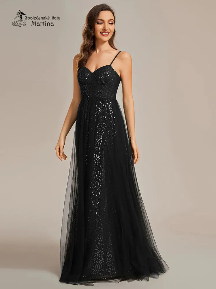 Černé maturitní či plesové šaty "Peige" na tenká ramínka - vel. 36