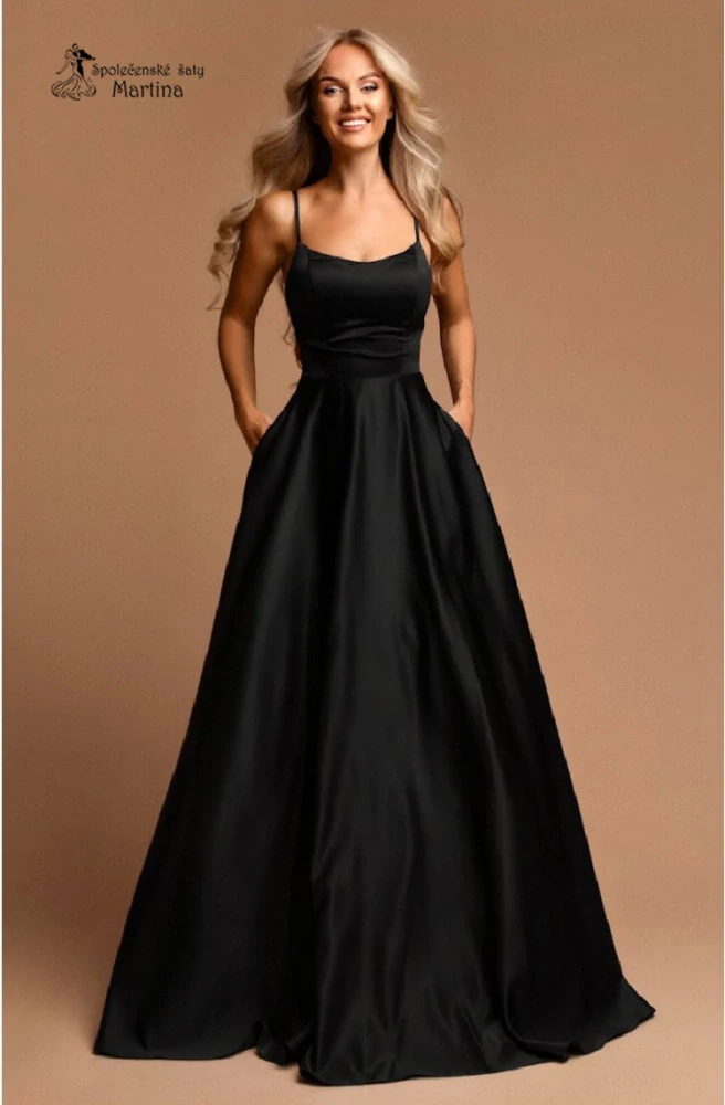 - Černé saténové maturitní šaty "Helen" s kapsami