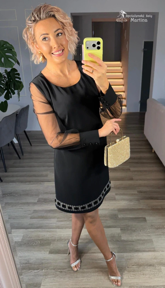 Černé společenské šaty "Greer" s transparentními rukávy a zdobeným lemem - vel. 422 390 Kč/ ks1 975 Kč bez DPH