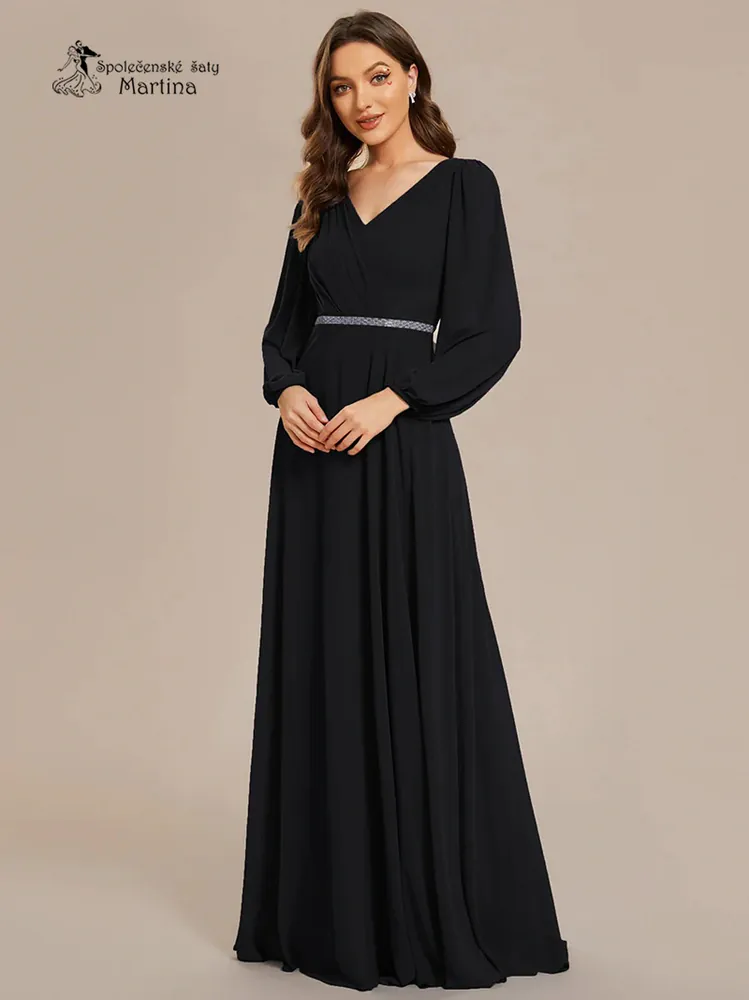 Černé společenské šaty s dlouhými rukávy "Kerenza" - vel. 46