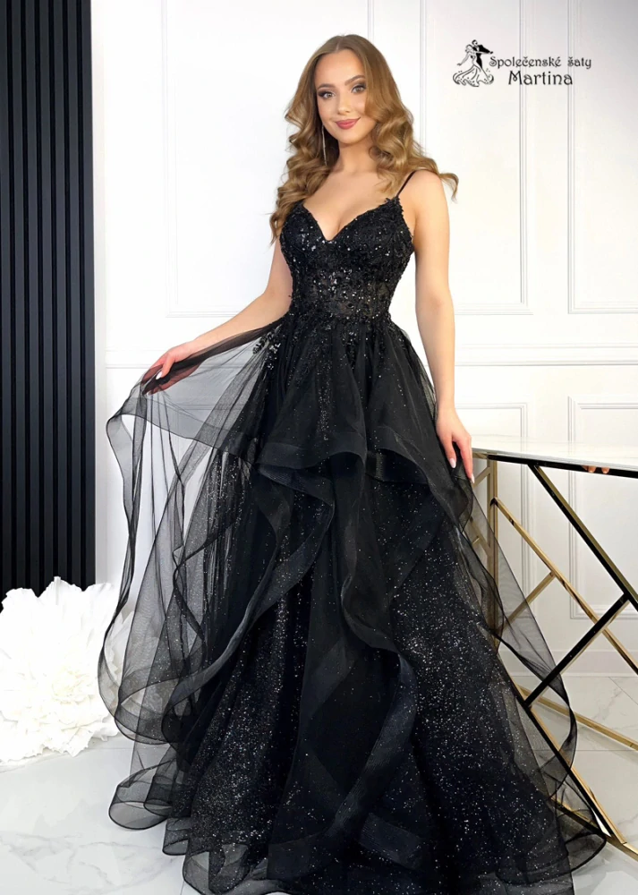 Černé tylové maturitní šaty "Raya" s volánovou sukní a korzetovým živůtkem - vel. M4 490 Kč/ ks3 711 Kč bez DPH