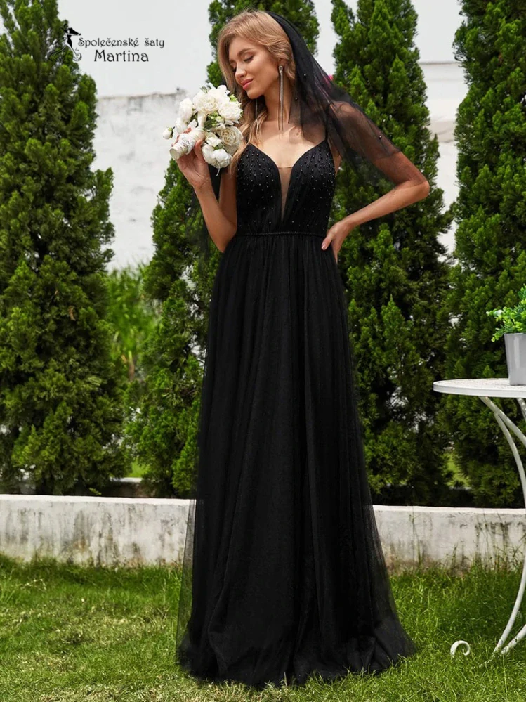- Černé tylové šaty s perličkami v živůtku "Tiana"