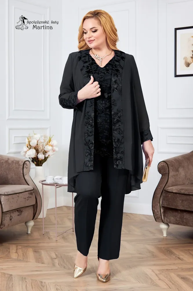 » luxusní kalhotový kostýmek vhodný pro silnější postavy