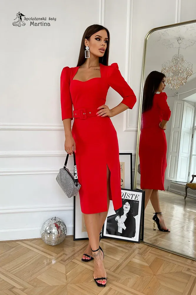 Červené pouzdrové šaty "Chanelle" se srdíčkovým výstřihem a rukávy - vel. 342 090 Kč/ ks1 727 Kč bez DPH