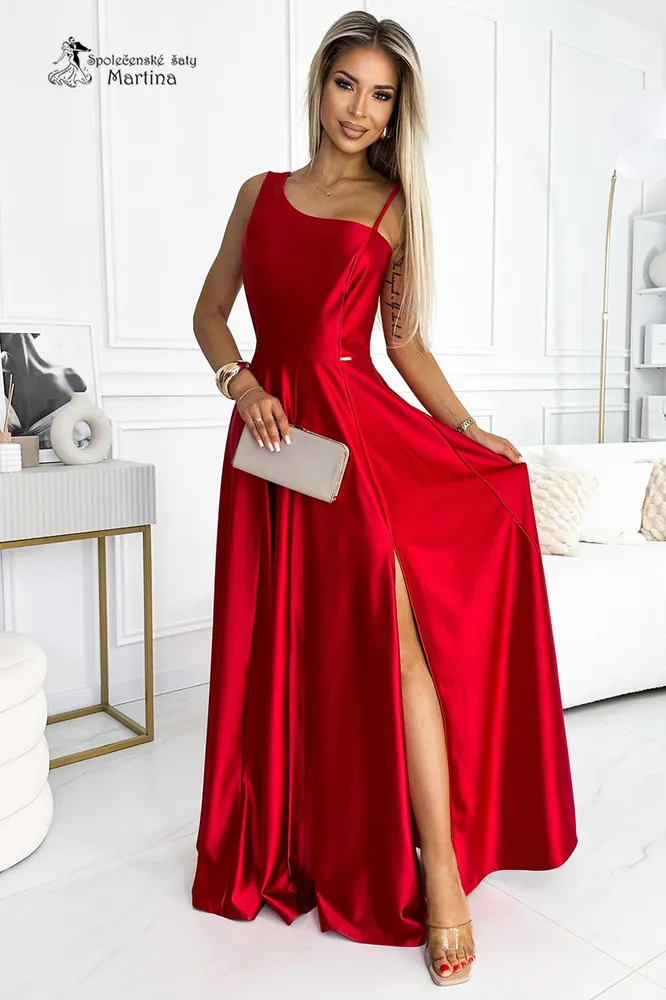 Červené saténové společenské šaty na jedno širší ramínko "Susan" - vel. M2 090 Kč/ ks1 727 Kč bez DPH
