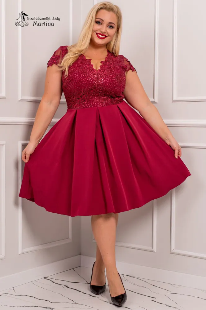 Vínové krátké společenské šaty "Daisy" s krátkým rukávkem