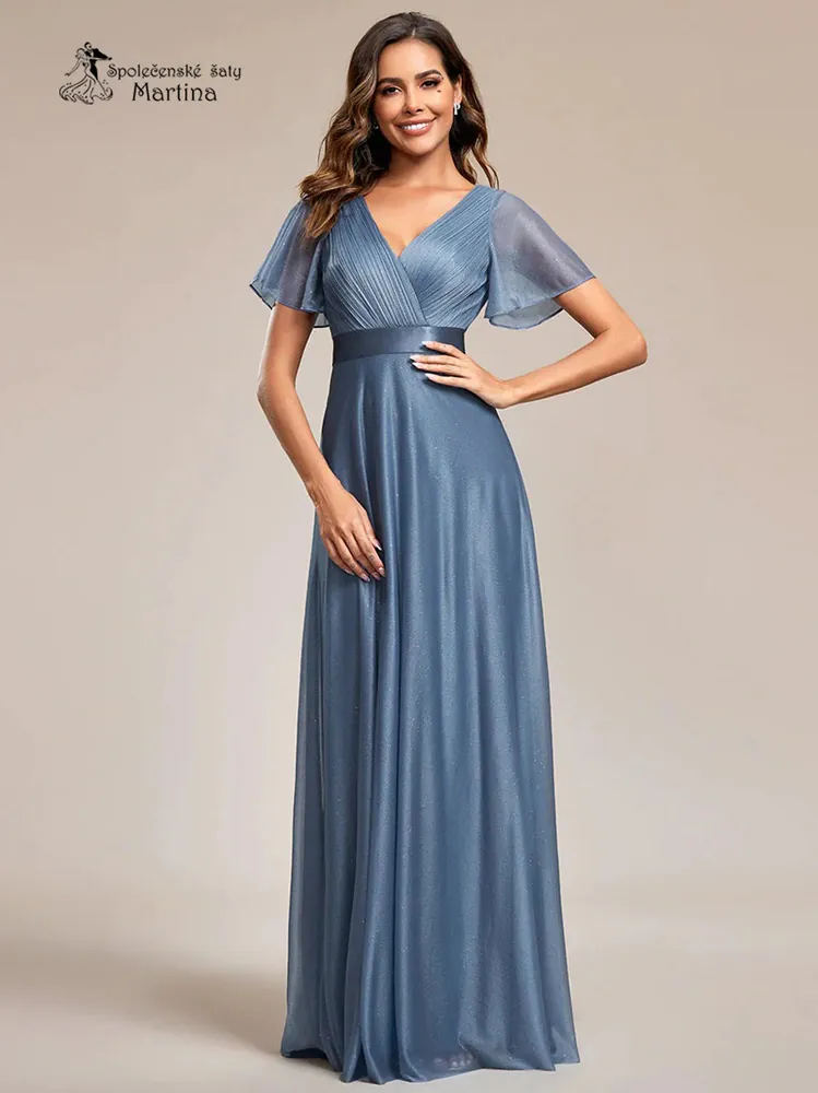Staromodré jemně třpytivé společenské šaty s volnými rukávy "Darien"