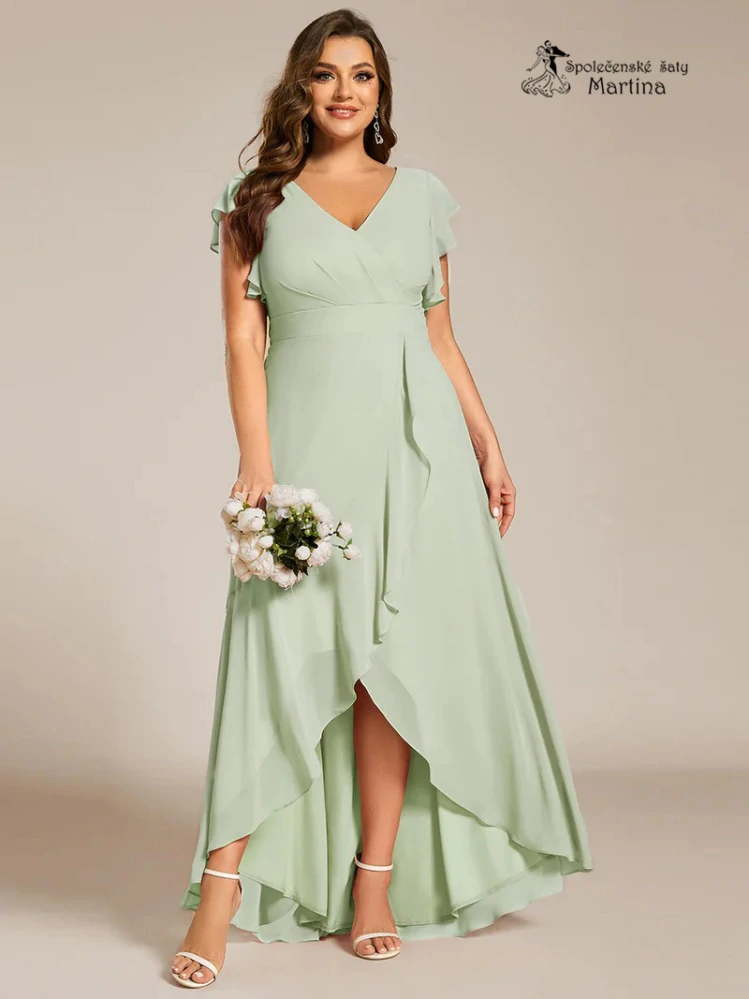 Dlouhé asymetrické mintové XXL šaty s volánovými rukávy "Alexina"