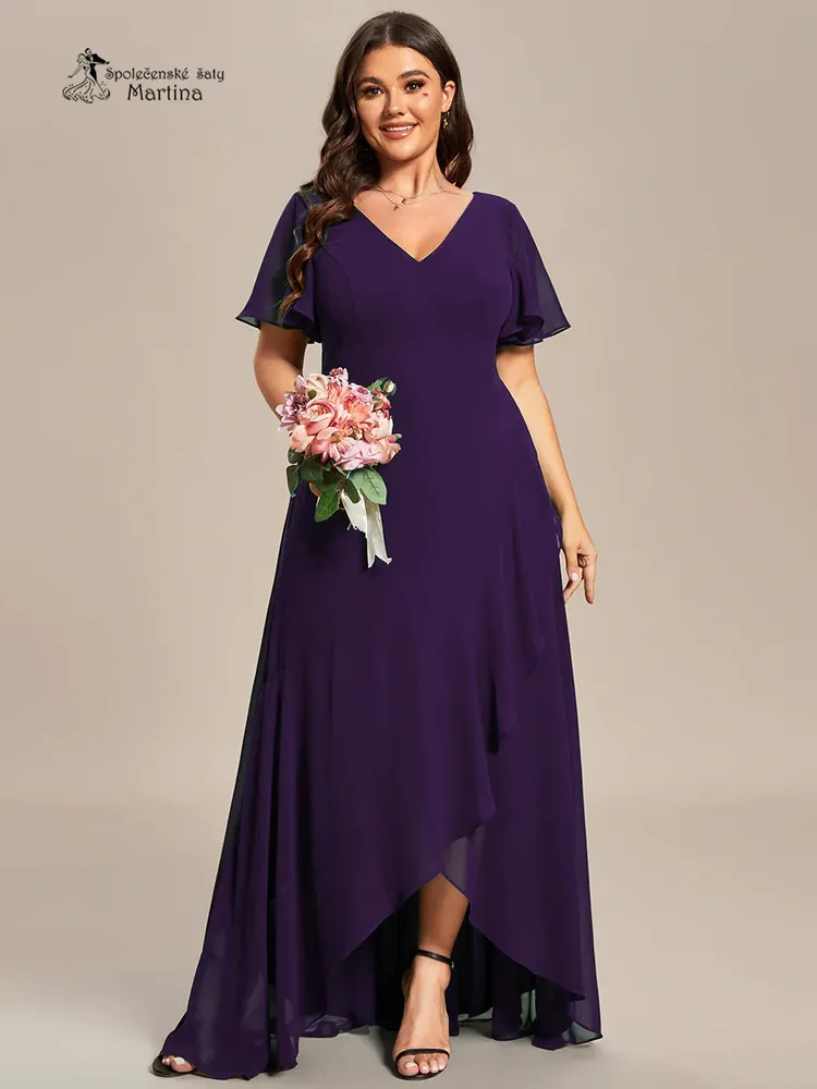- Dlouhé asymetrické tmavě fialové šaty "Rubye" s volnými rukávy