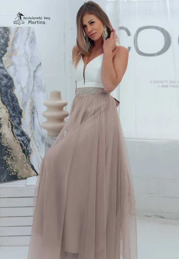 Dlouhé bílo-cappuccinové tylové šaty "Babydoll" pro svatebního hosta či družičku - vel. 342 490 Kč/ ks2 058 Kč bez DPH