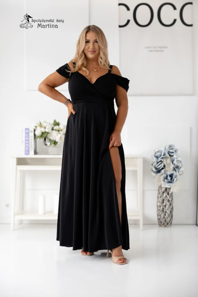 - Dlouhé černé hladké společenské šaty "Valentina" se spadenými rukávy