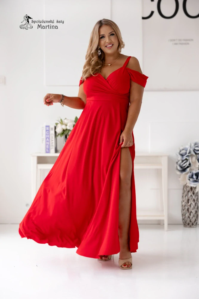 3. Dlouhé červené hladké společenské šaty "Valentina" se spadenými rukávy