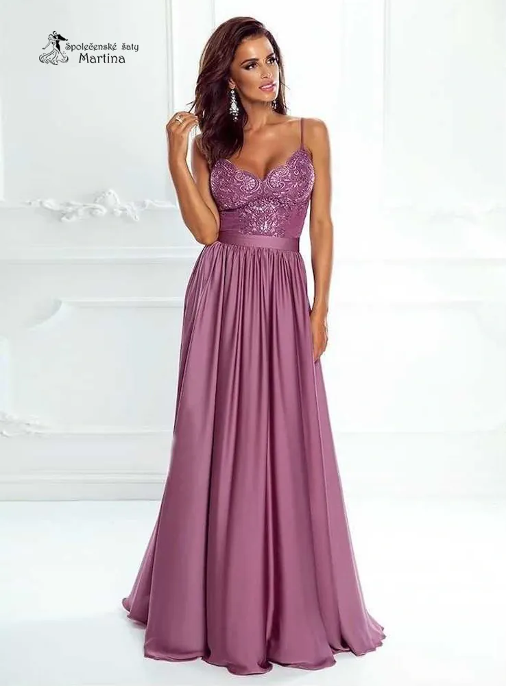 Ať už jdete na ples, do tanečních nebo do divadla, oslníte těmito krásnými šaty s úzkými špagetovými ramínky.