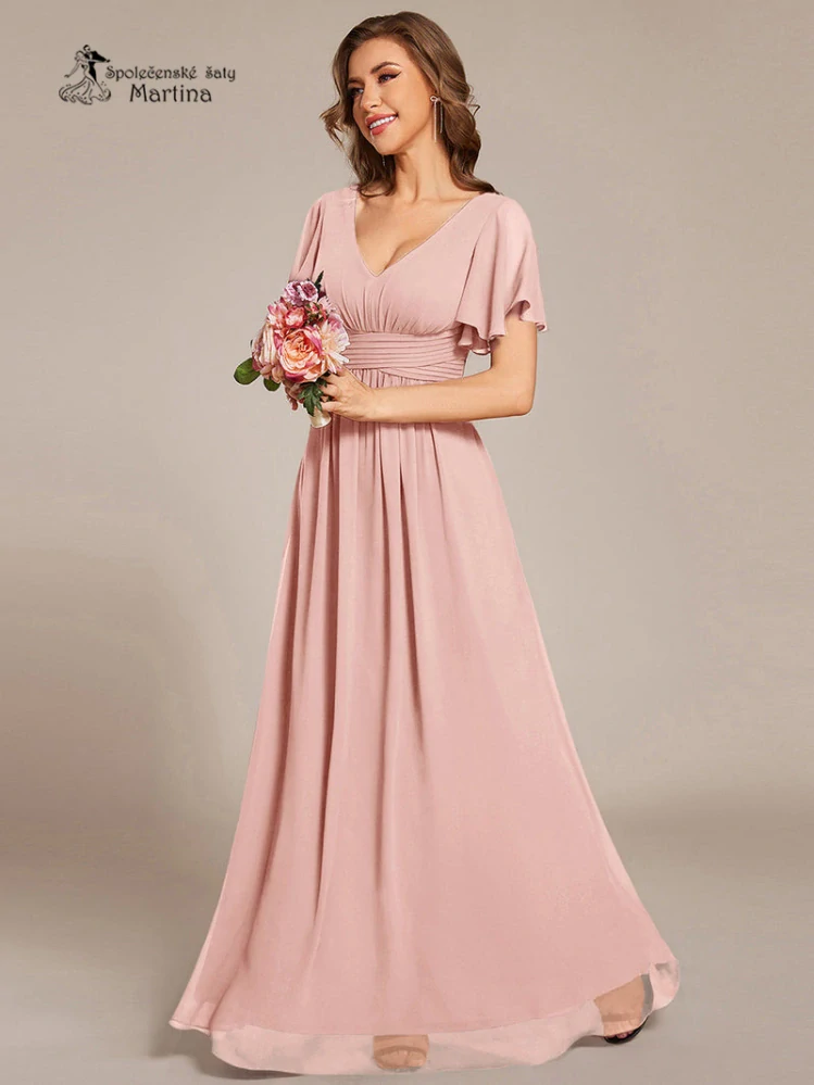 - Dlouhé růžové šifonové šaty na šněrování "Jessica"
