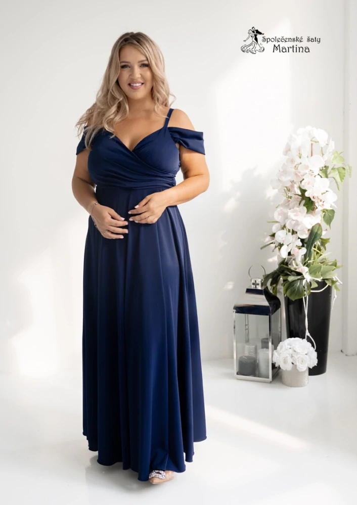 - Dlouhé tmavě modré hladké společenské šaty "Valentina" se spadenými rukávy