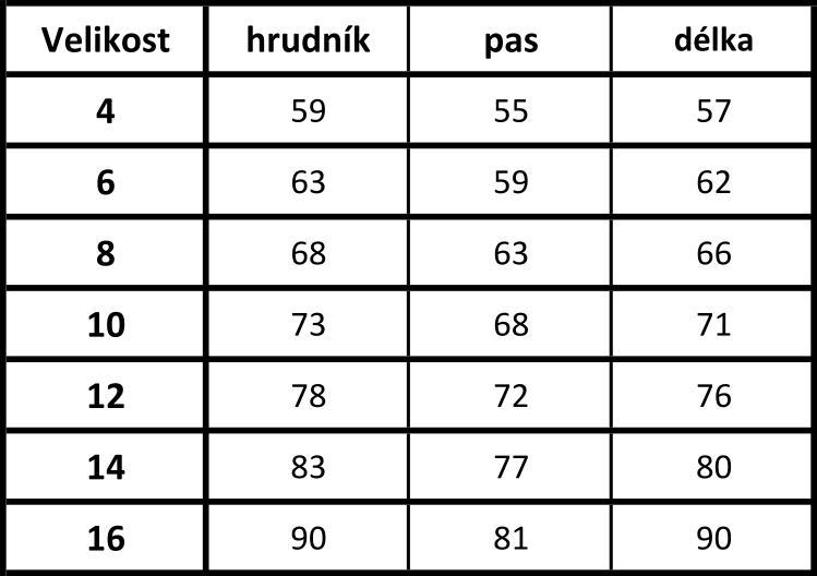 Při výběru velikosti změřte dívce hrudník, připočtěte cca 4 cm rezervu a podle toho vyberte z tabulky velikostí.