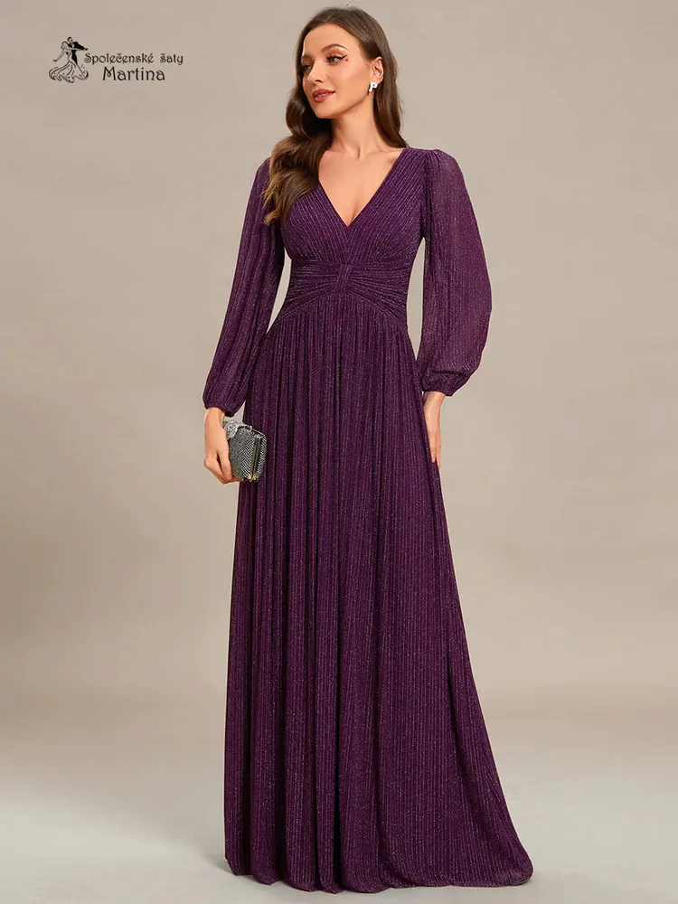 - Fialové žebrované společenské šaty "Antony" s dlouhými rukávy