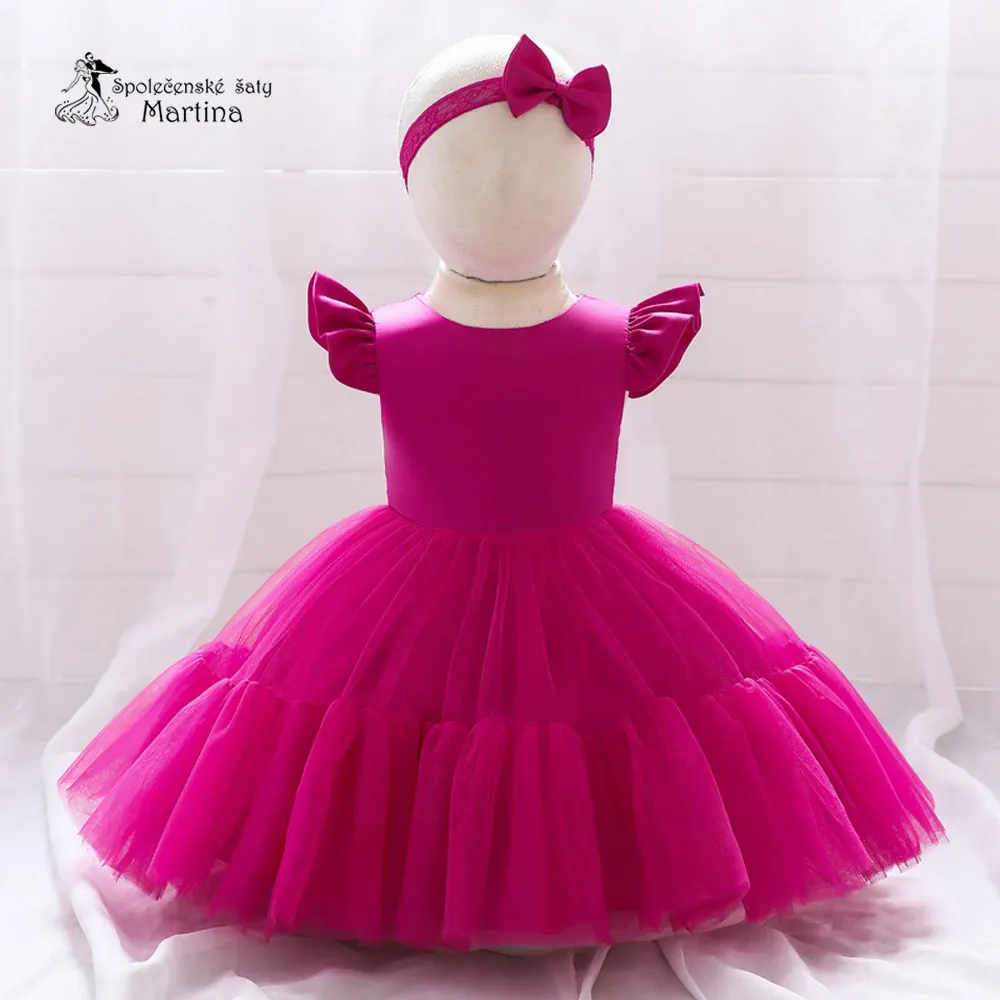 - Fuchsiové krátké tylovo-saténové šatičky "Andělka" - vel. 90