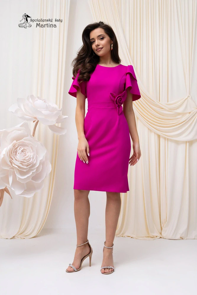 Fuchsiové pouzdrové šaty "Marietta" s ozdobnou květinou v pase - vel. 38