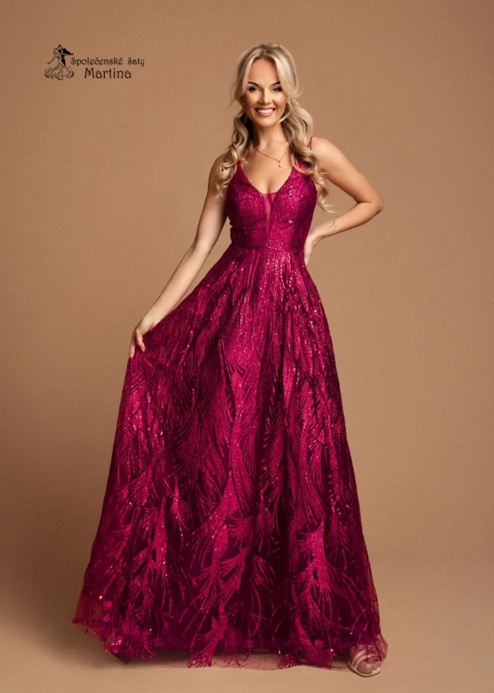 - Fuchsiové třpytivé maturitní šaty "Elina" na širší ramínka